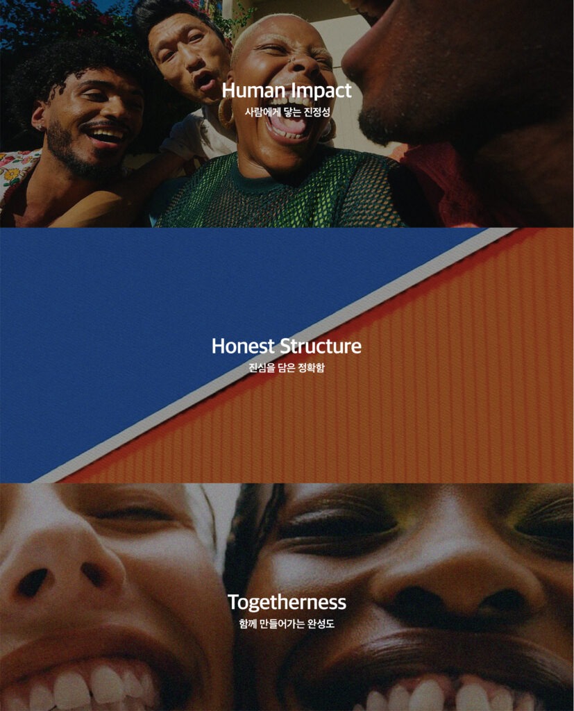 단단 비쥬얼스는 다음과 같은 세 가지 키워드로, 브랜드가 가진 따뜻한 정서와 영상 프로덕션으로서의 전문성이 공존할 수 있도록, 시각 언어 전반을 감정은 따뜻하게, 구조는 단단하게 라는 원칙 아래 설계했습니다.